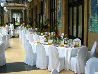 Folien oder Textilien zur Gestaltung der Tischdekoration, Wand- und Deckeneinkleidungen, Himmel, Baldachin, Tisch- und Buffeteinkleidungen, Vorhänge, Trennwände, Zeltwandverkleidungen